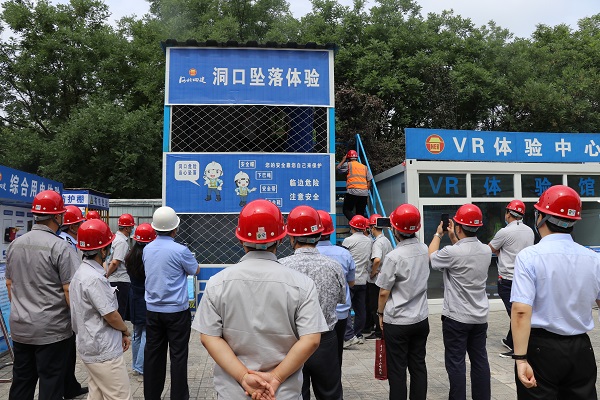 随后,参加活动的党员在项目党支部书记的引领下来到河北四建烟厂项目现场,首先映入眼帘的是排列整齐的工程概况、安全分级管控等十二牌六图。“红、黄、兰、绿四种颜色清楚的区分了现场安全风险点……。”大家一边认真地听着讲解一边说。在体验区,安全帽撞击体验、高空坠落体验等通过讲解员生动的解说和真人演示引起了大家浓厚兴趣,“谁来体验一下……。”“我来试试”烟厂支部的一个年轻人走上高空坠落的操作室随着项目工作人员的号令,坠落舱门迅速打开,年轻人瞬间落在下方的防护垫上,马上翻滚起来。“感觉怎么样?没事吧。”大家赶紧上去询问。“刚下坠的瞬间有些恐惧,我们平时还要增强安全意识,发生安全事故后果不堪设想……。”
