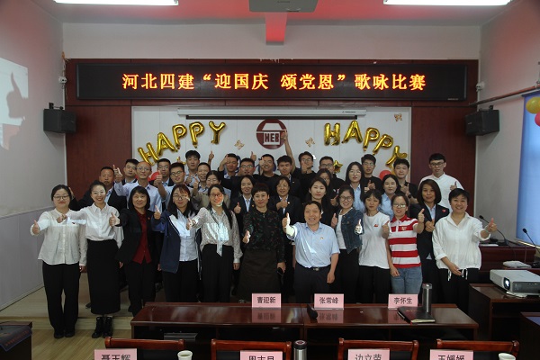 “我和我的祖国,一刻也不能分隔……”“愿祖国山河无恙,人民幸福安康……”公司四楼会议室传来阵阵优美的歌声和祝福语,赛场气氛喜庆而热烈。