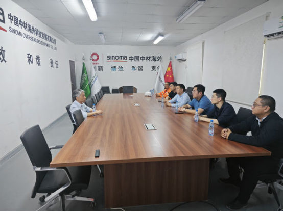 调研中,在中材海外公司项目部,张新煜与中材海外公司工程部部长吕威、项目经理张怀伟进行了沟通交流,深入了解了沙特未来建筑市场趋势,以及在沙特成立分、子公司等方面情况,为规划海外市场发展做好铺垫。新迈克中东工程有限公司是中材海外公司在迪拜成立的中东子公司,张新煜专程拜访了中材海外中东子公司总经理刘渠东,双方就中东市场发展前景进行了交流探讨,详细了解了该公司在水泥EPC+、风电新能源及节能环保、属地化经营投资等各项板块的开发经营模式,以及在中东地区承接项目应具备的条件和注意事项等,大家沟通交流氛围融洽,双方表示将继续加强合作,实现互补,共同发展。