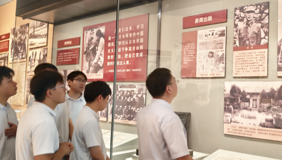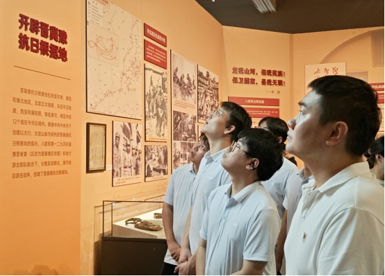 7月23日,分公司党总支书记贾银建带领20余名职工步入河北省博物院“河北抗战图片档案展”展厅,大家的目光随着历史脉络逐步移动。在泛黄的电文手稿、磨损的军用地图、定格战斗瞬间的黑白照片前,不时有人驻足凝视、低声交流。当看到100多人的八路军小部队午夜分工突袭,最终以零伤亡缴获了敌人一个骑兵连的战略物资时,安全科侯丽霞拿出手机记录细节:“先辈们在极其艰苦的条件下能够想出破敌良策,我们如今面对工作难点更应积极探索破解方法,干出新成效。”来到“根据地建设”展区,财务科李召燕指着减租减息和大生产运动的图片感慨道:“这与我们当前各科室联动推进项目工作的目的相同,要团结一心才能推进项目经营管理取得更好成效。”参与活动的党员干部纷纷表示,将把这份浸润心灵的感悟转化为“扎根岗位破难题,聚焦指标抓落实”的实际行动,勇挑重担。青年职工也郑重立下“传承伟大抗战精神,立足岗位强本领”的承诺,把工作做深做细做扎实,用实干诠释责任。