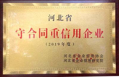 近日,公司被授予2019年度“河北省守合同重信用企业”荣誉称号。这一荣誉是社会和市场对公司规范管理、诚信履约、依法经营的充分肯定和高度认可,体现了公司日益提高的社会影响力和社会认知度,对公司拓展市场将起到积极的作用。(综合办公室)