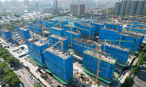 目前,项目36栋住宅楼主体结构施工已完成80%,其中D区1#、2#楼已封顶,进入二次结构施工阶段,并同步穿插机电管线及设备安装;地下车库施工完成55%。