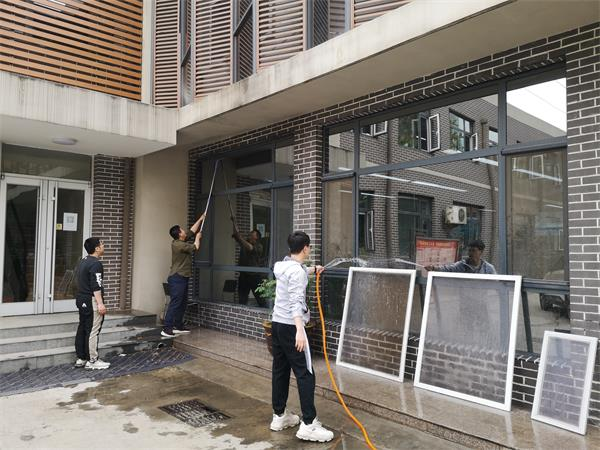 本次活动主要针对设计院的公共卫生区域。先是擦玻璃,职工孟荣荣说:“用报纸擦吧,以前都用报纸擦,擦得很干净。”“那都是老黄历了,现在都用擦玻璃神器啦,我早准备好了。”赵蓓说。只见赵蓓拿出自带了“刮水”功能的擦玻璃神器,沾上洗洁精水,吸附到玻璃窗上,不一会儿就把玻璃擦得干干净净。一楼设计室的外窗高,综合办准备了加长杆的玻璃刮子,司南带领几名青年职工认真擦拭,使窗户变得洁净透亮。接下来打扫办公区域,职工们不放过一个盲区、不落下一个角落。大家对办公室、楼道、卫生间的卫生死角进行清扫、喷洒消毒;对打印机、饮水机、储物柜等公用设备进行擦拭消毒;对门把手、冲水按钮、水龙头开关等擦拭消毒。室内清理完后清理小花园,大家拿着扫把、铲子等工具,清扫拔除杂草,捡拾花池的杂物,清理卫生死角,经过两个小时的劳动,办公环境内外焕然一新。